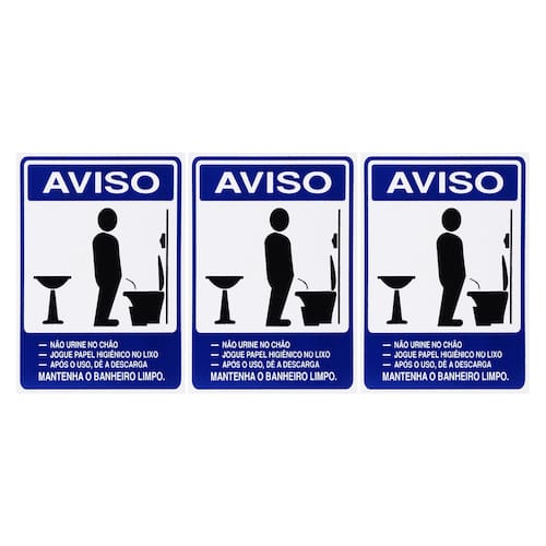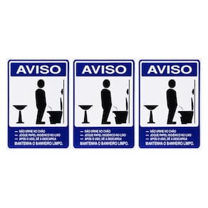 Neste Kit contém 3 unidades de placas com a escrita "Aviso Mantenha O Banheiro Limpo Masculino".