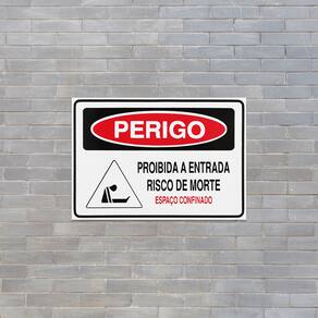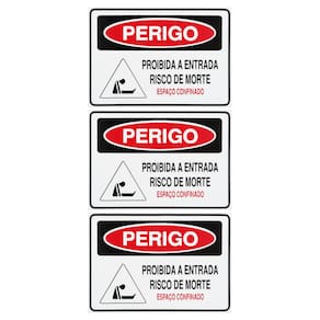 Neste Kit contém 3 unidades de placas com a escrita "Perigo Proibida A Entrada Risco De Morte Espaço Confinado".