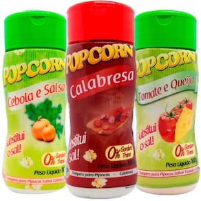 Combo 3 Temperos Para Pipoca Popcorn Sabores - Cebola E Salsa, Tomate E Queijo E Calabresa Tempero para pipoca.