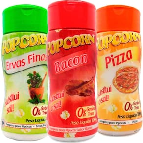 Combo 3 Temperos Para Pipoca Popcorn Sabores - Ervas Finas, Pizza E Bacon Tempero para pipoca.