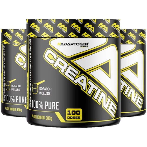 Combo 3X Creatina Monohidratada 100% Pura 300G Adaptogen - Sem Sabor - 3 unidades