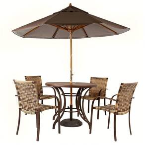 Combo 4 Cadeiras Ascoli Fibra Cor Cappuccino + Mesa Ripado + Central Marrom- Ideal Jardim, Piscina