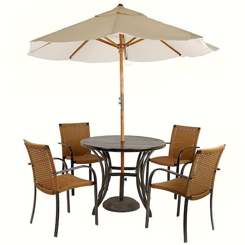 Combo para Piscina Ascoli - TRAMA Cadeiras de alumínio pintura com eletrostática, Mesa alta ripada e Ombrelone central com estrutura de madeira.Ideal para área de piscina, este combo compõe qualquer ambiente, com um designer moderno e leve, garante conforto e praticidade.Itens incls: 4 Cadeiras + 1 Mesa + Ombrelone + Base.- Cadeiras fabricadas em alumínio com pintura eletrostática e revestida em fibra sintética.Mais leve e resistente do que o Ferro, o Alumínio também pode ser molhado, pois não enferruja, a durabilidade cerca de 8 a 10 anos.- Mesa alta em alumínio com tampo ripado.- Ombrelone central em estrutura de Madeira, e base de concreto.Ambiente: Interno e externo, pode ficar exposto ao sol e chuva.Nossos produtos são de altíssima qualidade, leve e com design moderno, garantindo assim conforto e praticidade para seu bem-estar.Essa característica oferece resistência suficiente para o móvel ser em decorações de ambientes externos.Combinação em vários ambientes com traços modernos e clássicos, para todos os gostos!ALUMÍNIO MAIS RESISTENTE DO QUE FERRO, NÃO ENFERRUJA E MAIOR DURABILIDADE!Especificação do produto.- Estrutura: Alumínio, não enferruja;- Pintura: Eletrostática, não descasca;- Solda: Solda TIG, de alta resistência,- Acabamento: Fibra sintética com UV Protection;Fibra Sintética especial - Sua proteção UV proporciona maior durabilidade, resistente ao Sol e Chuva com proteção UV, a fibra sintética da Trama /UP Mobille é produzida com materiais de altíssima qualidade.Peso Máximo indicado: 140 Kg.GARANTIA: 1 ano de fábrica.FABRICANTE: TRAMA Nossos produtos são ideias para decorar ambientes clássicos e modernos, interno e externo como: Cozinha, Sala, Quarto, Varanda, Sacada, Edícula, Área de Piscina, Jardim, Área de lazer, Festa, Reunião, Churrasco, Área Gourmet, Recepção, Sala de espera, Sala de Filmes entre outros.Fácil de Limpar Utilize Sabão Neutro para a limpeza das fibras e estruturas.Passe um pouco com um pano macio, logo em seguida, passe outro pano macio, porém seco. Deixando assim, com o brilho novamente!.....TGA - Você também pode buscar por - Conjunto de área, cadeira de alumínio, cadeira de área, cadeira para piscina, cadeira para área de piscina, cadeira pintada, cadeira com pintura, cadeira para sacada, cadeira para sol, cadeira para varanda, cadeira gourmet, cadeira artesanal, kit de cadeiras, combo de cadeiras, cadeiras artesanais, cadeiras de fibra, cadeira de junco, cadeiras de móveis artesanais, cadeira sintética, jogo de cadeiras, cadeira resistente, cadeira vime, trama móveis, tramar cadeiras, mesa alta, mesa com tampo, mesa ripado, ombrelone, ombrelone central, para área de festa, sombreiro, guarda sol.