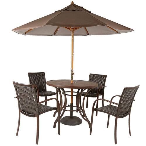 Combo 4 Cadeiras Ascoli Fibra Cor Tabaco + Mesa Tampo Ripado + Ombrelone Central Marrom- Ideal Jardim, Piscina