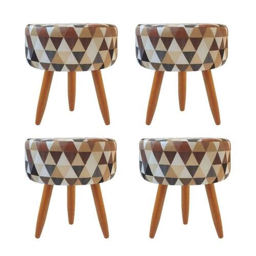 Combo 4 Puffs Decorativos Redondo Pé Palito-tecido Trianglo Bege