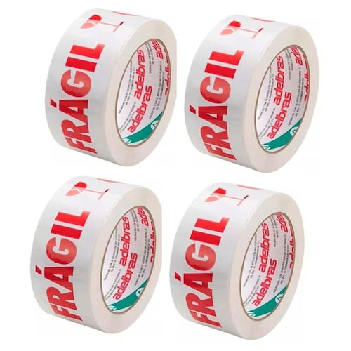 Combo com 4 unidades de Fita Adesiva Impressa Cuidado Frágil 48mm - Rolo com 100 Metros - AdelbrasContem: 4 Rolos de Fita Adesiva Impressa "CUIDADO FRAGIL"A fita para empacotamento Adelbras é a sua melhor escolha em fita adesiva, pode ser usada para empacotamento, lacração de pacotes, fechamento de caixas de papelão, marcação, diferenciação e uso geral.Composição: filme de BOPP impresso por sistema de flexografia, adesivo acrílico.Largura: 48mmComprimento: 100 Metros Fundo: BrancoImpressão: VermelhoMarca: Adelbras