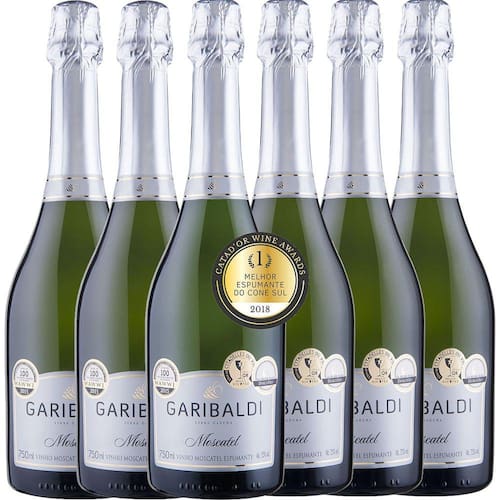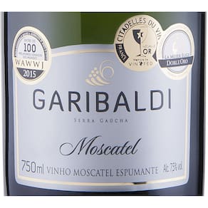 O Espumante Garibaldi Moscatel Branco de coloração límpida e atraente, perlage formado, borbulhas médias e numerosas, com ótima formação de espuma de cor clara com reflexos esverdeados.