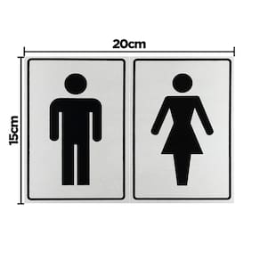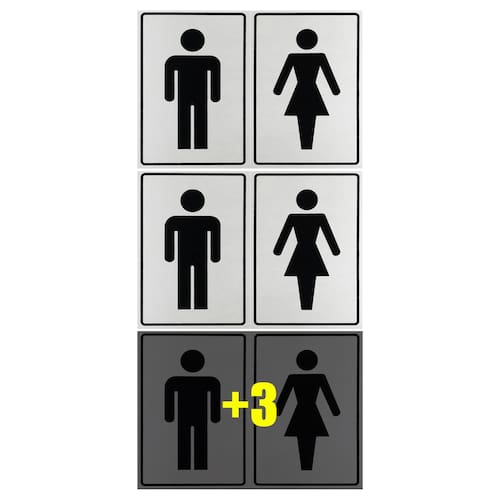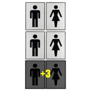 Neste Kit contém 6 unidades de placas com a escrita "Banheiro Masculino / Feminino".
