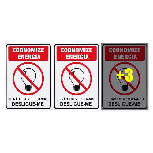 Neste Kit contém 6 unidades de placas com a escrita "Economize Energia Se Não Estiver Usando, Desligue-me".