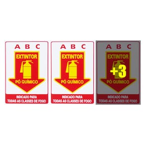 Neste Kit contém 6 unidades de placas com a escrita "Extintor ABC Pó Químico, Indicado Para Todas As Classes De Fogo".