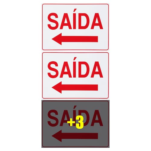 Neste Kit contém 6 unidades de placas com a escrita "Saída Com Seta Para Esquerda".
