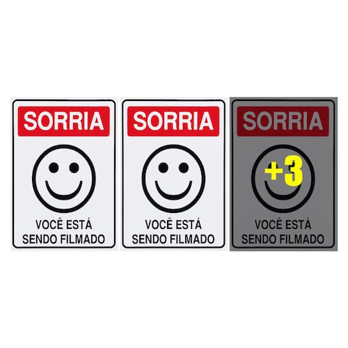 Neste Kit contém 6 unidades de placas com a escrita "Sorria Você Está Sendo Filmado".