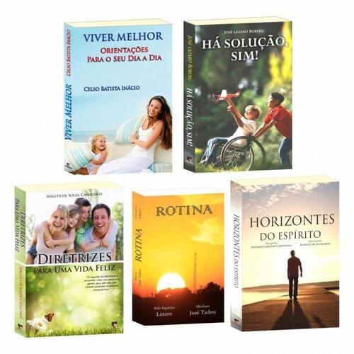 Combo Autoconhecimento com 5 Livros Este Kit contém 1 exemplar de cada: Viver Melhor - Orientações Para o Seu Dia a Dia Autor: Celso Batista Inácio Páginas: 224 - Tamanho: 16,00 x 23,00 Há Solução, Sim! Autor: José Lazaro Boberg Páginas: 192 - Tamanho: 16,00 x 23,00 Diretrizes para uma Vida Feliz Autor: Sergito de Souza Cavalcanti Páginas: 224 - Tamanho: 16,00 x 23,00 Rotina Médium: José Tadeu Silva / Ditado por: Lázaro Páginas: 168 - Tamanho: 14,00 x 21,00 Horizontes do Espírito Médium: Wander Cardoso Campolina / Ditado por: Ignácio de Antioquia Páginas: 192 - Tamanho: 16,00 x 23,00