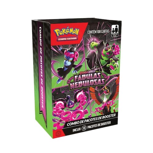 Mergulhe no mundo misterioso de Kitakami com o Combo de Booster Pokémon Fábulas Nebulosas Nesta expansão cheia de enigmas e surpresas, você irá desvendar segredos sombrios e se deparar com criaturas poderosas em uma batalha épica no universo Pokémon.