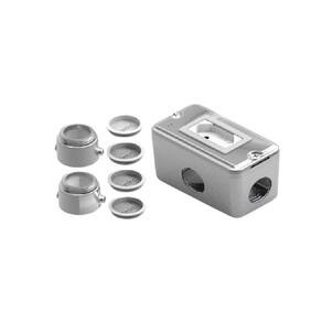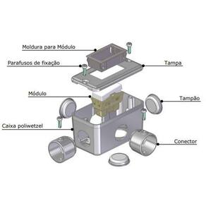 Características O combo é composto por: Caixa, Tampa, 2 Conectores, 4 Tampões e Parafusos para fixação; Possuem tampas com moldura para utilização de módulos; As entradas não usadas ficam protegidas com tampões plásticos; Parafusos com tratamento especial organometálico ; Produto com acabamento prata abrilhantamento ; Produto conforme NBR 15701 Conduletes metálicos roscados e não roscados para sistemas de eletrodutos; Rosca padrão BSP paralela conforme ISO 2281 e ISO 2282; Possui terminal de aterramento em todas as bitolas; Produto versátil e prático, que permite diferentes combinações e conexões, que agilizam a instalação; Produto 100% Reciclável.