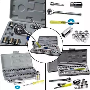 Este conjunto de chave é completo tendo 1 kit de 40 peças e Tem mais a maleta de chaves é pequena e leve você pode levar para onde você quiser E também para você guardar no carro na mochila, extremamente fácil de ser . Conjunto de chave canhão foi desenvolvido para auxiliar você Em suas atividades com ferramentas ele é portátil, super pratico para organizar E você pode leva-lo em situações de Emergência, seu conjunto vai estra lá te ajudando. Tamanho aproximado da caixa: a:12.5xl:24cm Peso aproximado: 1030g 1 - chave catraca 17cm 1 - adaptador 3/8x21mm 1 - adaptador x3/8 5.4cm 1 - chave suporte para bits 3/8 14.1cm 1 - disco de catraca 3/8 1 - prolongador 3/8 6.7cm 14 - soquete 4 / 4.5 / 5 / 5.5 / 6 / 6.5 / 7 / 7.5 / 8 / 9 / 10 / 11 / 12 / 13mm 14 - soquete 5/32, 3/16, 7/32, , 9/32, 5/16, 11/32, 3/8, 13/32, 7/16, 15/32, , 17/32 e 9/16 3 - soquete oitavados , 5/16 e 3/8 2 - soquete 3/8 15 e 16 Cor: cromado Composição: plastico e metal