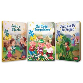 Reviva a magia de Os Três Porquinhos, João e Maria e João e o Pé de Feijão em livros lindamente ilustrados! Cada título vem com 3 quebra-cabeças de 15 peças com cenas das histórias — diversão garantida enquanto as crianças leem e brincam. Além disso, reforçam a compreensão da narrativa, estimulam a atenção, a memória e a coordenação motora. Ideal para pais e educadores que buscam unir leitura, imaginação e desenvolvimento cognitivo de forma divertida e envolvente!