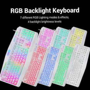 Redragon Pacote combo S101 All in One PC Gamer Value, inclusive: 1. Teclado para jogos Redragon RGB retroiluminado para computador PC [branco] * 7 modos de iluminação, , 4 níveis de brilho, velocidade de respiração personalizável (a luz de fundo pode ser desligada) * Tampas de chave cristalinas com letras resistentes a arranhões. * 114 teclas, 25 teclas podem ser operadas simultaneamente 100% livre de conflitos (anti-fantasma). * Um total de 22 teclas multimídia, 12 FN+ PLUS 10 teclas multimídia extra dedicadas. * Opção de bloqueio de chave do Windows. * Design ergonômico antiderrapante e resistente a derramamentos com apoio integrado para pulso/palma * Cabo USB de alta velocidade de 1,8 m para uma conexão confiável. 2. Mouse para jogos Redragon Computer PC [branco] * Total de 6 botões. * 5 botões programáveis. * Sensor de 3200 dpi. * Aceleração de 30 g. * Almofadas de pés TEFLON lisas e duráveis. * Conjunto de ajuste de peso de 8 peças (2,4 g x 8). * Cabo USB de alta velocidade de 1,8 m. * Suporta Plug Play e download de software adicional, disponível em redragonusa.com/downloads. 3. Fone de ouvido para jogos Redragon * Fone de ouvido estéreo Redragon leve para jogos com microfone. * Conforto máximo para sessões de jogos prolongadas. * Protetores auriculares fechados com redução de ruído, faixa de cabeça altamente ajustável. 4. Mouse pad para jogos Redragon P001 ARCHELON vermelho-preto * 33 x 26 x 0,3 cm (tamanho grande) * A superfície é feita de tecido processado de seda para garantir que o mouse se mova muito suavemente. * A parte inferior é feita de espuma de borracha processada natural, o que dá flexibilidade para se adaptar a mesas de diferentes materiais de superfície, antiderrapante, design de longa duração de alta qualidade * Materiais superfinos e de alta densidade, à prova d'água e fácil de limpar. * Processo integrado avançado de várias camadas, alta flexibilidade, antiondulação e deslizamento. - Teclado RGB para jogos retroiluminado: com suporte de pulso, 7 modos e efeitos de iluminação RGB diferentes, 4 níveis de brilho da luz de fundo, velocidade de respiração ajustável, teclado ergonômico com 114 teclas silenciosas, 25 teclas sem conflito, 10 teclas multimídia dedicadas mais 12 teclas multimídia FN+ adicionais, a tecla WIN pode ser desativada para jogos. Antiderrapante, à prova de respingos, pés de teclado ajustáveis para o ângulo de ponta perfeito, cabo USB de alta velocidade com fio de 1,8 m - Mouse para jogos retroiluminado vermelho; mouse ergonômico para jogos Redragon 3200 DPI (ajustável pelo usuário), 3600 FPS, motor de jogo super rápido 30G ACC, conjunto de ajuste de peso de 8 peças (2,4 g x 8), almofadas de teflon suaves de longa duração. 6 botões, 5 botões programáveis pelo usuário através do software. Cabo USB de alta velocidade de 1,8 m com cabo de fibra trançada de alta resistência de 3 mm de diâmetro - Tapete de mouse grande para jogos: tapete de mouse Redragon para jogos à prova d'água, superfície de tecido processado de seda garante movimentos suaves e ultra-precisos do mouse. A parte inferior é feita de espuma de borracha processada natural antiderrapante, oferecendo grande flexibilidade, ajustando-se a diferentes superfícies. As bordas costuradas evitam danos e ondulações - Fone de ouvido REDRAGON leve para jogos com microfone: fone de ouvido estéreo com sensibilidade de 103 dB e drivers direcionais de 40 mm que oferecem extrema precisão de áudio. O máximo conforto para sessões de jogos prolongadas através de fones de ouvido fechados com redução de ruído usando espuma viscoelástica macia e confortável com faixa de cabeça altamente ajustável para ajuste perfeito. Cabo durável de alta qualidade de 1,8 m com plugue de 3,5 mm incluído. Adaptador Y de 3,5 mm. Também funciona com PC, laptop, tablet, PS4, Xbox One - Compatibilidade com teclado e mouse para jogos: Windows 10, Windows 8, Windows 7, Windows Vista ou Windows XP, suporte limitado para teclado Mac OS. Conteúdo da embalagem: teclado para jogos Redragon S101, mouse para jogos M601, mouse pad para jogos, fone de ouvido para jogos H101 e manual do usuário (sem garantia de versão em português)