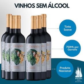 Combo de Vinhos Sem Álcool Despido Tinto Suave - 750mL - Nacional - 06 UN O Combo Vinho Sem Álcool Despido Tinto Suave de 6 garrafas é uma excelente opção para quem deseja apreciar um vinho de alta qualidade sem os efeitos do álcool. Produzido no Rio Grande do Sul, este vinho desalcoolizado mantém todas as características sensoriais de um vinho tradicional, com teor alcoólico inferior a 0,5%. Ideal para harmonizar com pratos leves ou para ser apreciado sozinho, o Despido Tinto Suave oferece uma experiência gastronômica única e saudável. Ficha Técnica: Tipo: Vinho Tinto Sem Álcool Marca: Despido Volume: 750mL Origem: Nacional Teor Alcoólico: Marca: Não Informado Ean: 07890519542879