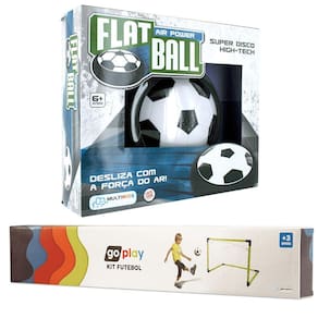 Flat Ball é um super disco high-tech que desliza com a força do ar! Jogar bola de mesa ou de chão dentro de casa sem quebrar nada é possível. Flat Ball desliza com a força do ar no piso frio, madeira ou carpete! O material macio utilizado na lateral do disco protege móveis e paredes. Invente o seu jogo, você pode jogar futebol, boliche, hockey e muito mais!