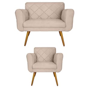 Combo Namoradeira e 1 Poltrona Estofada Hall de Entrada Isabella Suede Bege - LM DECOR