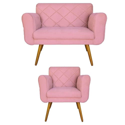 Combo Namoradeira e 1 Poltrona Estofada Hall de Entrada Isabella Suede Rosa - LM DECOR