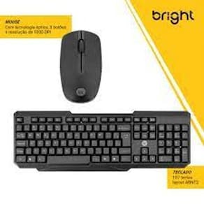 kit teclado e mouse sem fio bright a linha de produtos bright conta com qualidade e design para facilitar seu dia a dia. O combo mouse e teclado sem fio bright possui: tecnologia óptica, frequência de 2,4ghz, resolução de 1000 dpi, nano usb 2. 0 e distância sem fio de até 10m. - combo teclado e mouse sem fio - design stardard - teclado com 107 teclas - 1 nano usb para os dois produtos - ótimo custo x benefício instalação: conecte o nano na porta usb de seu computador; insira as pilhas no seu mouse e teclado e pronto tudo certo para o uso. Aviso: o usb está dentro do mouse. Pilhas não inclusas. Especificações: - 2 vias rf digitais de 2,4ghz. - mouse óptico sem o 1000 dpi - dist. De trab. : até 10m; 64 canais com 65k id e busca auto. ; rf especificações: - número de canais: 64 freq. De cond. : 2402mhz-2480mhz - modulação: fsk id: 65536 - ext. De t. : acima de 10m, 360 saída máx. De energia: 0dbm teclado especificações: - comp. De transmissão: 3. 0mm - entrada de energia: 1 pilha aa não inclusa mouse especificações: - velocidade de alinhamento: acima de 35 cm/seg. - consumo de energia: 10ma - entrada de energia: 2 pilhas aa não inclusas requisitos do sistema: - windows 2000/xp/vista/win 7, 8, 10; porta usb disponível; homologação anatel: 219272215403