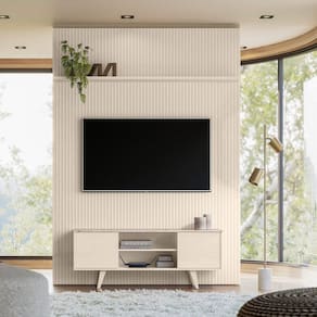 O Combo New Panorama da 7 Decor combina estilo contemporâneo, funcionalidade e proporções ideais para ambientes compactos ou minimalistas. Com painel em MDF frisado, duas portas deslizantes e pés de poliestireno, o conjunto elegância e praticidade para compor sua sala de forma equilibrada.