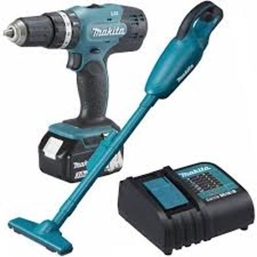 Combo parafusadeira furadeira 18v e aspirador pó à bateria makita Combo parafusadeira/ furadeira de impacto dhp453sfx8 e aspirador de pó dcl180z, são ideais para os processos de manutenção e limpeza de diversos ambientes. A parafusadeira/ furadeira de impacto é ideal para aperto e desaperto de parafusos e para fazer furos em madeiras, metais e/ou alvenaria. Possui velocidade variável e rotação reversível e 2 velocidades mecânicas. Conta com freio instantâneo e 16 níveis de torque. Mandril de aperto rápido. Já o aparador de grama a bateria foi desenvolvido para a facilitar o corte de grama e a limpeza de diversos locais como terrenos, jardins, espaços abertos, acabamento em grama. Possui punho assimétrico e cabos emborrachados, garantindo maior segurança e conforto ao usuário. Silencioso e baixa vibração.