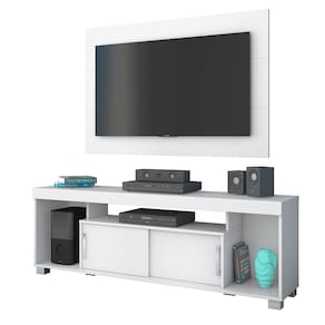 O Combo Pierre combina rack e painel em MDP 15 mm com pintura UV, oferecendo um visual moderno e ótima capacidade para sua sala. Portas deslizantes com puxadores cromados e pés cromados em poliestireno.