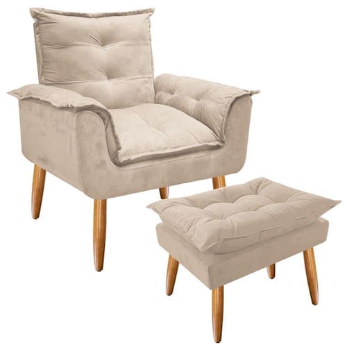 Combo Poltrona Decorativa Opala Deluxe com Puff - Bela Móveis Cor: Bege Poltrona Opala Fábrica Licenciada Bela Móveis Com mais de 10 anos de experiência em Vendas Online, a Fábrica BELAMÓVEIS se destaca como referência no cenário de Lojas Virtuais. Ao longo desse período, atendemos com sucesso mais de 100 mil clientes pela internet. Nosso produto OPALA é destaque, figura entre os mais vendidos na categoria de poltronas nos Marketplace, sendo devidamente reconhecido como Marca Registrada da BELAMÓVEIS.