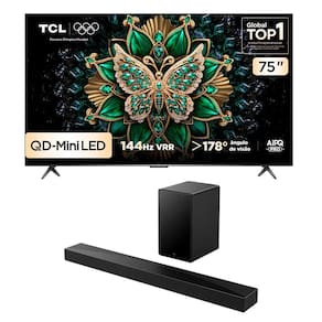 Combo Smart TV TCL 75 QLED Mini LED 4K C6K WiFi 144Hz 75C6K e Soundbar TCL Subwoofer 5.1 Q65H