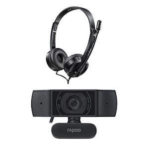Conteúdo do Combo - 1 Webcam Rapoo 720p Foco Automático C200 - RA015 e 1 Headset Rapoo USB Microfone Sem Ruído Preto H120 - RA020