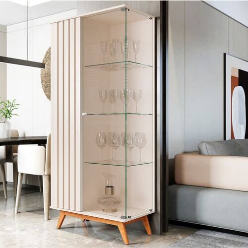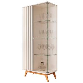 Painéis em Mdp de 15mm com pintura Uv, porta deslizante com puxador e pés em poliestireno cromado. Painel e rack embalados em um único volume. Sistema de fixação com girofix