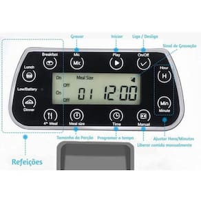 Gravação de Mensagem de Voz: Grave uma mensagem personalizada de até 10 segundos para chamar seu pet para a hora da refeição. Ele vai adorar ouvir a sua voz antes de saborear sua comida!