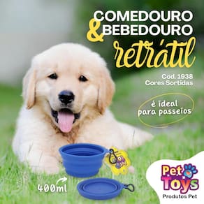 Comedouro e Bebedouro Retrátil para Cães e Gatos 400 ml - Pet ToysLeve praticidade e cuidado com seu pet para onde for O Comedouro e Bebedouro Retrátil da Pet Toys é ideal para passeios, viagens e até o dia a dia. Com capacidade de 400 ml, ele pode ser tanto para água quanto para ração, sendo perfeito para cães e gatos de todos os portes. Fabricado em silicone atóxico e resistente, é fácil de higienizar, dobrável e leve para transportar. Seu design retrátil permite que você economize espaço ao guardá-lo na bolsa, mochila ou no carro. Uma solução prática, higiênica e durável para manter seu melhor amigo sempre bem alimentado e hidratado, em qualquer lugar. Características:capacidade: 400 ml Material: Silicone atóxico e durável Função 2 em 1: pode ser como comedouro ou bebedouro Design retrátil e portátil Fácil de limpar e armazenar Ideal para passeios, viagens e uso doméstico