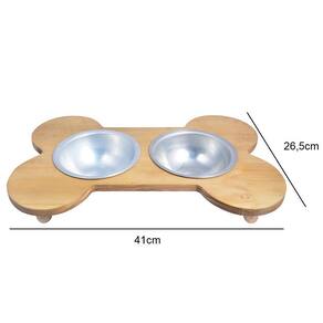 - Comedouro Fabricado em Madeira Pinus - Potes Fabricados em Aluminio - Possui 2 Potes - Formato de osso - Esbanja fofura - Medidas: 6x4136x26,5cm AxLxC