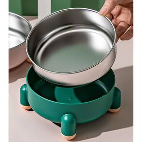 A base do comedouro para animais de estimação foi projetada para ser elevada para facilitar a alimentação do animal, reduzir a pressão nas costas e proteger a coluna cervical do animal.