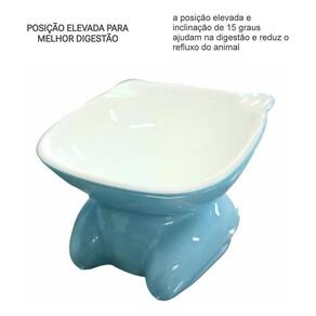 Comedouro ergonômico elevado em cerâmica - para gatos e pet O comedouro ergonômico jts pet é projetado para proporcionar uma experiência de alimentação mais confortável e saudável para o seu pet. Com uma posição elevada e uma inclinação de 15º, este comedouro facilita a digestão e ajuda a prevenir problemas de refluxo. Sua superfície côncava e bordas expandidas garantem que a comida permaneça sempre no centro do comedouro, evitando o causado aos gatinhos quando seus bigodes tocam as bordas dos potes tradicionais. Benefícios de um comedouro elevado: - redução de dores articulares: a posição elevada reduz a tensão na região cervical, proporcionando mais conforto durante a alimentação. - prevenção de engasgos: a inclinação de 15º permite que as estruturas anatômicas, como esôfago e estômago, fiquem na posição correta, reduzindo o risco de engasgos. - prevenção de refluxo: a posição elevada e a inclinação ajudam a evitar problemas de refluxo após a alimentação. - conforto para os bigodes: com bordas expandidas, o comedouro evita a fadiga e dos bigodes, um problema comum em gatos que sentem desconforto quando seus sensíveis bigodes tocam as bordas dos comedouros tradicionais. Informações técnicas - marca: jts pet - modelo: alimentador comedouro ergonômico elevado - material: cerâmica - medidas: altura: 10 cm x largura: 13 cm x diâmetro interno: 12 cm - capacidade: até 200 g de ração / aproximadamente 210 ml - peso: 400 gramas - cor: azul / verde a escolher no momento da compra Itens inclusos - 1 comedouro ergonômico elevado em cerâmica Marca: Não Informado