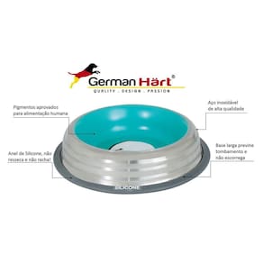 A Germanhart é uma marca que visa a inovação de produtos, com foco em garantir o divertimento do seu melhor amigo. Acreditamos que eles merecem mais que apenas produtos comuns, eles merecem inovação, qualidade e muito carinho. O comedouro em inox da Germanhart é super resistente e durável! O anel de silicone não resseca e não racha! A base larga previne tombamentos e não escorrega. Além de pigmentos seguros!