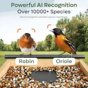 Este comedouro inovador conta com identificação de pássaros por IA, que reconhece instantaneamente as espécies e envia informações detalhadas diretamente para seu dispositivo, enriquecendo seu conhecimento e apreciação da vida selvagem local. A construção resistente ao tempo e à esquilos assegura durabilidade e proteção, permitindo que você aproveite a observação sem interrupções, independentemente das condições externas.