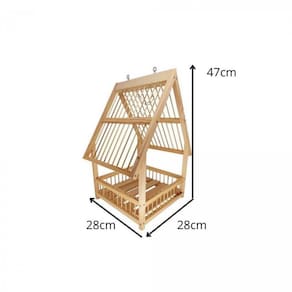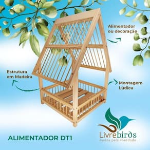 Comedouro Livre Birds DT1 para Pássaros Livres CARACTERÍSTICAS: - Estrutura de madeira; - Produto envernizado; - Ganchos duplos; - Para plantas naturais e artificiais; - Indicado para ambientes internos e externos; - Medidas: A 47cm x L 28cm x C 28cm. Marca: Livre Birds