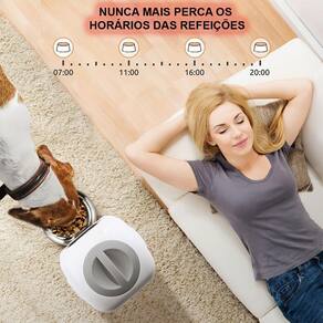 Como funciona: Você pode programar 4 refeções diárias e cada refeição pode programar a quantidade que deseja de ração entre 1 a 20 porções , bem simples e funcional É possível também gravar sua voz chamando seu pet para comer nos horários das refeições.