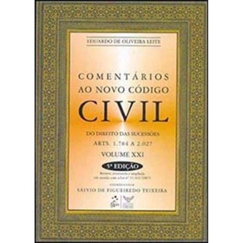 Esta Obra Vem Preencher Uma Lacuna Surgida Com A Alteração Do Código Civil. Centrando-Se Nas Várias Espécies De Contrato, Em Comentários Ao Novo Código Civil - Do Direito Das Sucessões, O Dr. Eduardo De Oliveira Leite Faz Uma Análise Minuciosa Destes Temas.Abaixo De Cada Artigo Do Código Civil De 2002, Comparado Com A Legislação Anterior, O Autor Inseriu A Proposta Da Legislação Francesa E Portuguesa Que, Em Diversas Passagens, Serviu De Paradigma Ao Sistema Nacional. Igualmente, Em Termos Latino-Americanos, Foram Resgatadas A Legislação Argentina E Uruguaia, Países Irmãos Que, A Partir Do Advento Do Mercosul, Ficam Mais Próximos Da Família Jurídica Sul-Americana.Ainda Que Não Seja Prática Muito Comum Em Trabalhos Jurídicos Do Gênero Comentários, O Autor Inseriu Nesta Obra Uma Vasta Jurisprudência, Que Acompanha, Praticamente, Todos Os Artigos Analisados, De Modo A Facilitar A Transposição Da Proposta Teórica-Dogmática Ao Terreno Fático Da Realidade Vivenciada Junto Ao Pretório Nacional.