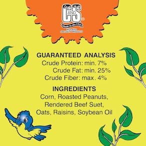 - Contém sebo de carne renderizada, amendoim torrado, passas, milho e aveia