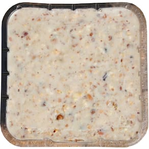 - Sebo bovino renderizado, amendoim torrado, milho, aveia e passas