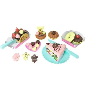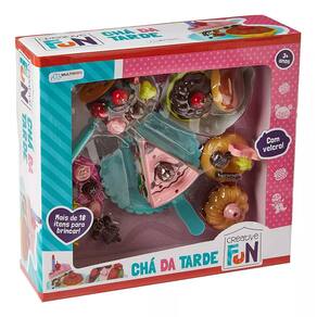 Com creative fun chá da tarde você pode chamar os amigos para um delicioso encontro! decore o bolo e os docinhos como quiser! quer um pedaço? Com as fatias que grudam e desgrudam você pode cortar e servir os pedaço de rocambole! vem também com donuts, tortinha, vários enfeites e outros acessórios que vão deixar o seu chá da tarde incrível!