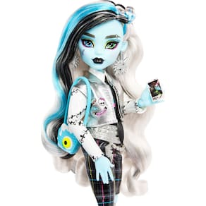 Boneca Frankie Stein Monster High, pacote múltiplo do Comitê de Boas-Vindas com 15 acessórios, incluindo pôster, adesivo, kit para animais de estimação e muito mais