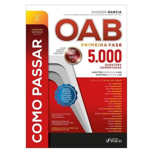 Como Passar Na Oab 2026 - 1ª Fase - 5.000 Questões Comentadas 22ª Ed