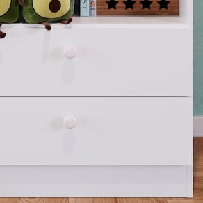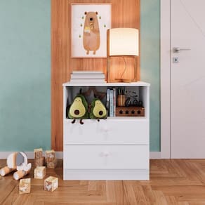 Comoda 02 Gav E Nichos LA005 Comm é versátil, prática e elegante. Estrutura em MDP de 15 mm, e excelente acabamento em Finish Foil (Fosco). Composta por 02 gavetas com corrediças metálicas, 01 prateleira, nicho, puxadores plásticos e acompanha sapatas. Gavetas suportam até 3 kg cada, a prateleira e o nicho suportam 5 kg distribuídos. É ideal para o quarto do seu bebê, facilitando e otimizando o espaço e o aconchego para ao ambiente. Este móvel chegará em sua casa separado em 01 volume.